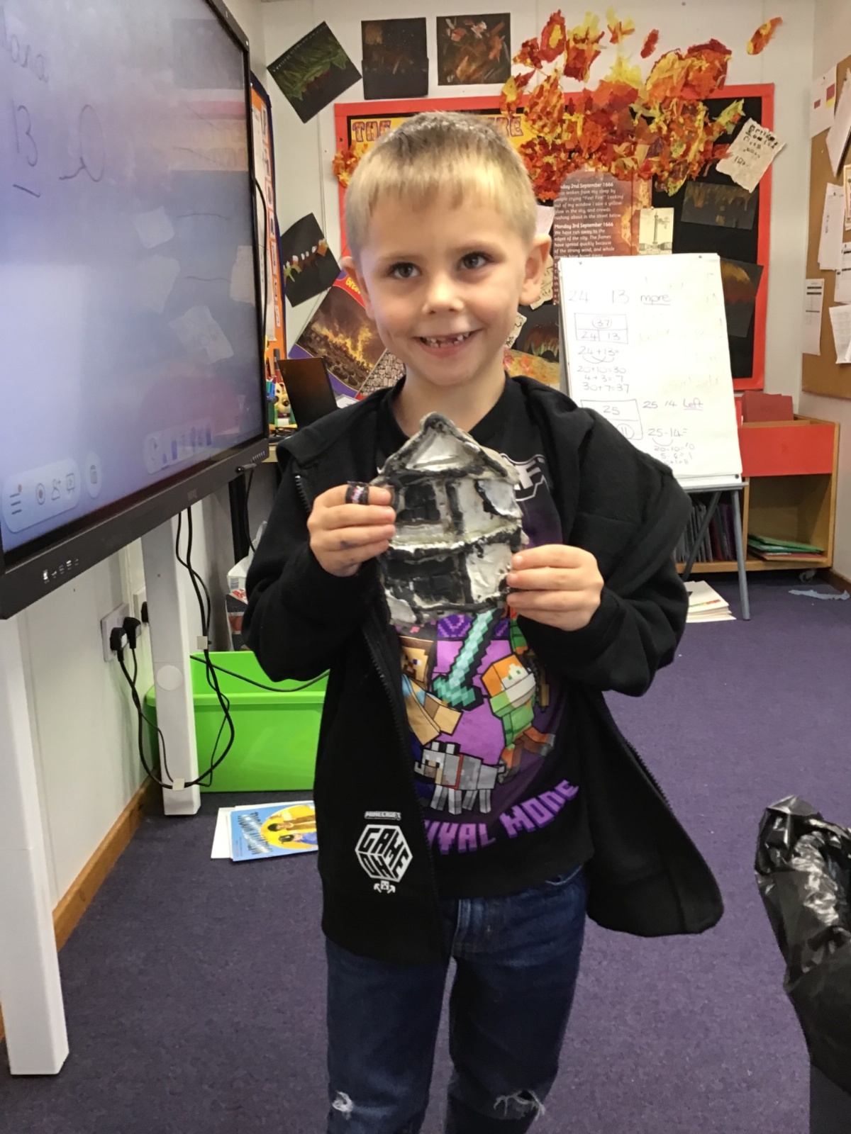 We made clay houses in art. They are made to look like houses in 1666.