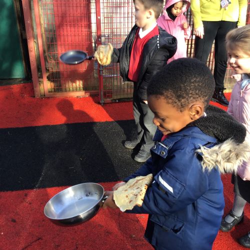 We had great fun trying to toss and catch the pancakes! We then got to taste some with lemon and sugar! It was a great morning.
